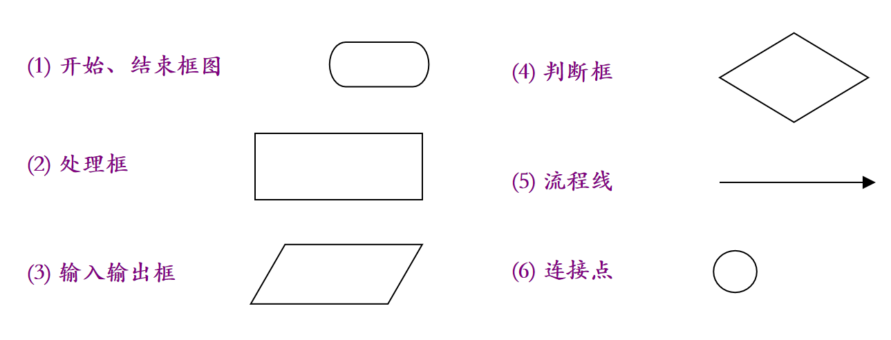 表示的程序结构包括:顺序结构框,选择结构框和循环结构框